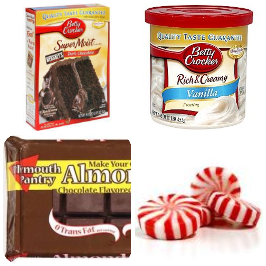After deciding what it was I was doing, the next decision was what flavor? Oh geez, the choices! My mind was spinning! I finally decided on Dark Chocolate cake with Vanilla frosting and topped them off with crushed peppermints (it's the holiday season you know). |